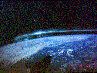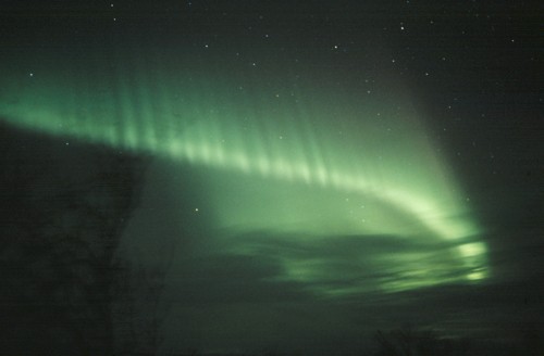 Лентообразные сияния простираются в направлении восток- запад на несколько тысяч километров, а по вертикали