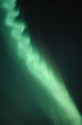 протекает в виде волн света, вздымающихся вверх одна за другой. Такое сияние возникает при определенных