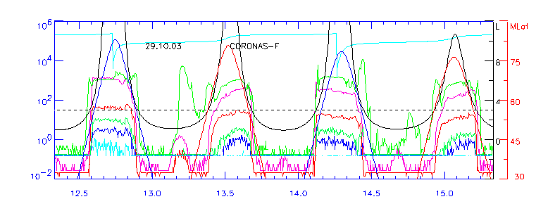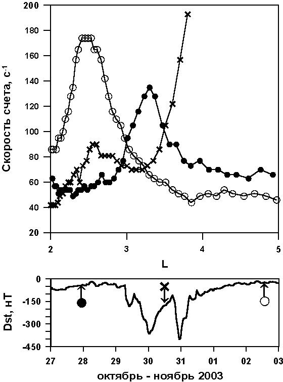 нижней части рисунка. 27.10.03 максимум внешнего радиационного пояса наблюдался