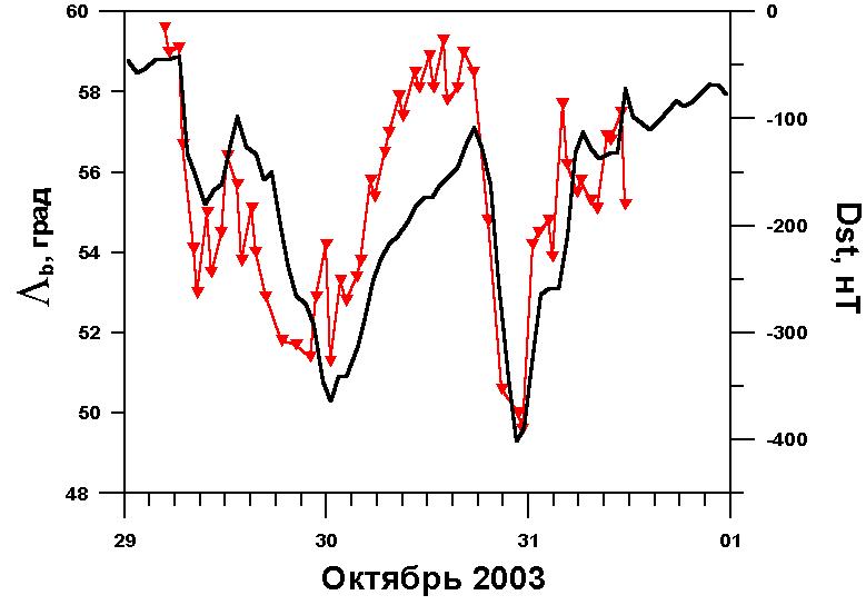 Значений индекса Dst-вариации приведено на состояние 10.01.2004 г.