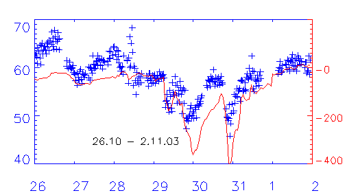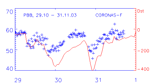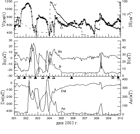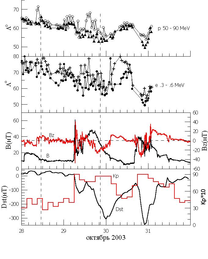 Космические исследования № 5 и 6 А.В. Дмитриева и А.В. Суворовой ГЕОСИНХРОННЫЕ ПЕРЕСЕЧЕНИЯ МАГНИТОПАУЗЫ 29-31 ОКТЯБРЯ 2003 ГОДА PDF-файл статьи Криволуцкого и др. "Изменения в озоносфере..." ЦАО . РЕЗУЛЬТАТЫ ИЗМЕРЕНИЯ ДОЗ В ОКТЯБРЕ - НОЯБРЕ 2003 ГОДА ... В.М. ПЕТРОВ и др, PDF - file ИМБП ЭФФЕКТЫ МАГНИТНОЙ БУРИ 29-31 ОКТЯБРЯ 2003 Г.НА СРЕДНЕШИРОТНЫХ КВ- РАДИОТРАССАХ (ПО ДАННЫМ ДОПЛЕРОВСКИХ ИЗМЕРЕНИЙ) Бочкарев В.В., Петрова И.Р., Теплов В.Ю. , PDF-file Казанский государственный университет Среднеширотные сияния на юге Восточной Сибири во время больших геомагнитных бурь 29-31 октября и 20-21 ноября 2003г. Михалев А.В, Белецкий А.Б, Костылева Н.В., Черниговская М.А, PDF-file (Институт солнечно-земной физики СО РАН, Иркутск а/я 4026.) mikhalev@iszf.irk.ru Проявления внезапного начала...Баишев Д.Г. и др., PDF-fileИКФИА Структура возмущенной магнитосферы Лазутин Л.Л., PDF-file !!! Рисунки к статье в КИ