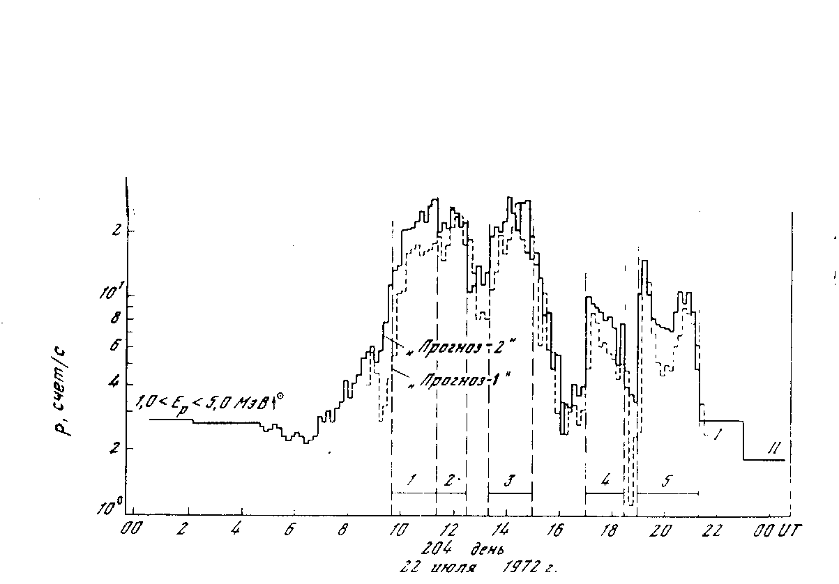 космического радиошума) показали, что потоки солнечных протонов с энергией