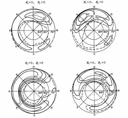 Яхнин А.Г., Сергеев В.А. Частота появления сияний в полярной шапке и ориентация вектора ММП. Геомагнетизм и аэрономия, T.19, № 3, 566- 567, 1979.