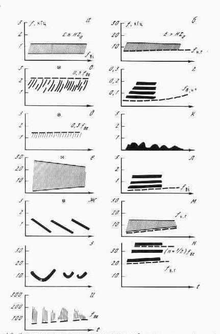 Р и с . 1 (1.8.) Динамические спектры основных типов собственных излучений ионосфер-но-магнитосферной плазмы (схематическое изображение) (схематическое изображение)