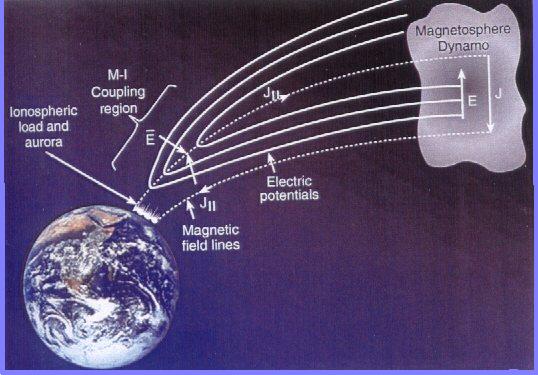 Две различных плазменных области, соединенные магнитными силовыми линиями, создают общую токовую систему, передают энергию и ускоряют заряженные частицы, в частности, вызывающие полярные сияния.